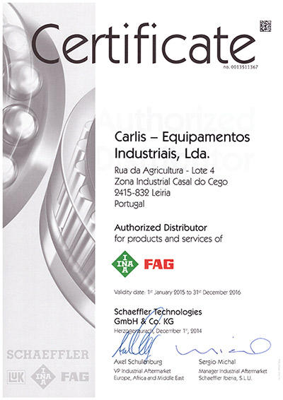 Somos distribuidores autorizados para os Produtos e Serviços INA/FAG, com o certificado nº 001351177.